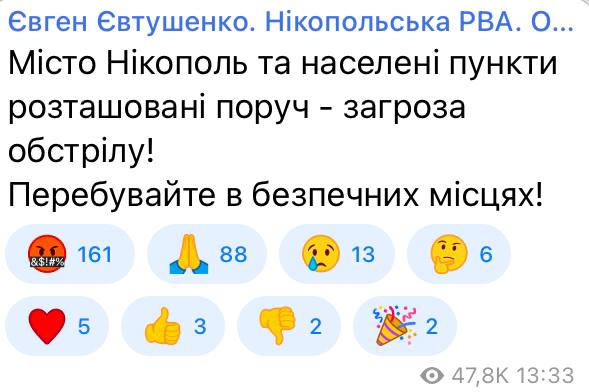 Багатостраждальна Нікопольщина вдень мала ризики атак.
