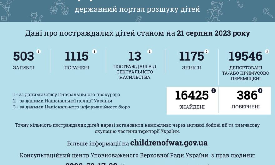 Зазначають, що усі дані можна знайти чи оприлюднити на інтернет-платформі «Діти війни» – там збирають інформацію про дітей, які постраждали внаслідок війни рф проти України.