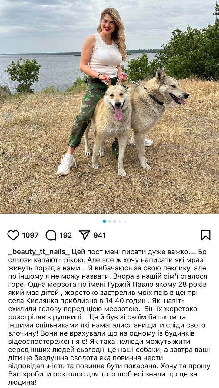 Власниця ж тварин вимагає справедливого покарання за вбивство чотирилапих.