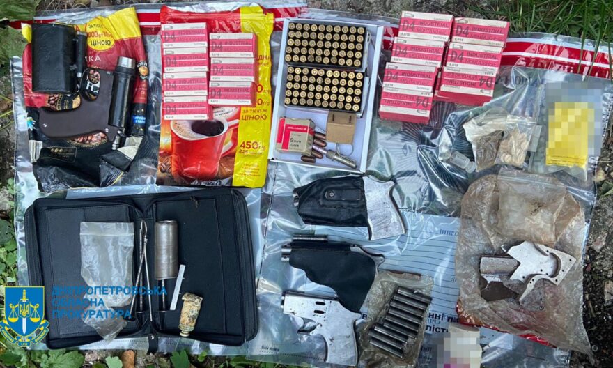 У ході проведення санкціонованих обшуків за місцем мешкання, у гаражному приміщенні, в автомобілі батька та сина вилучено засоби конспірації, схеми реалізації злочинів, підробні номери автівки, мобільні, саморобні вогнепали та ножі, гранати, набої, психотропні речовини.