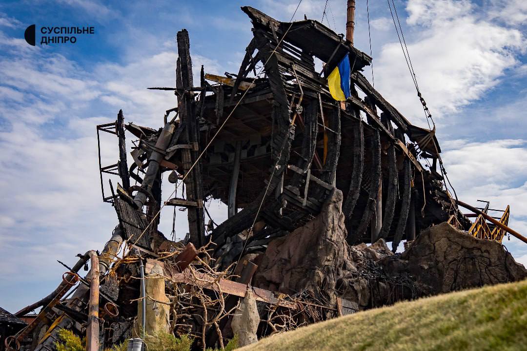 Того вечора суттєво псотраждав розважальний комплекс Дніпра Бартоломео. Представники комплексу повідомили ЗМІ, що на момент атаки у Бартоломео знаходилось понад 400 людей: 50-70 працівників та близько 350 відвідувачів. Зазначали, що там ніхто не постраждав – працівники разом з гостями евакуювалися у спеціальне захисне приміщення. Вже наступного дня після атаки на корабель, що згорів, вставновили новий український прапор. Повідомлялось, що комплекс планують відбудувати.