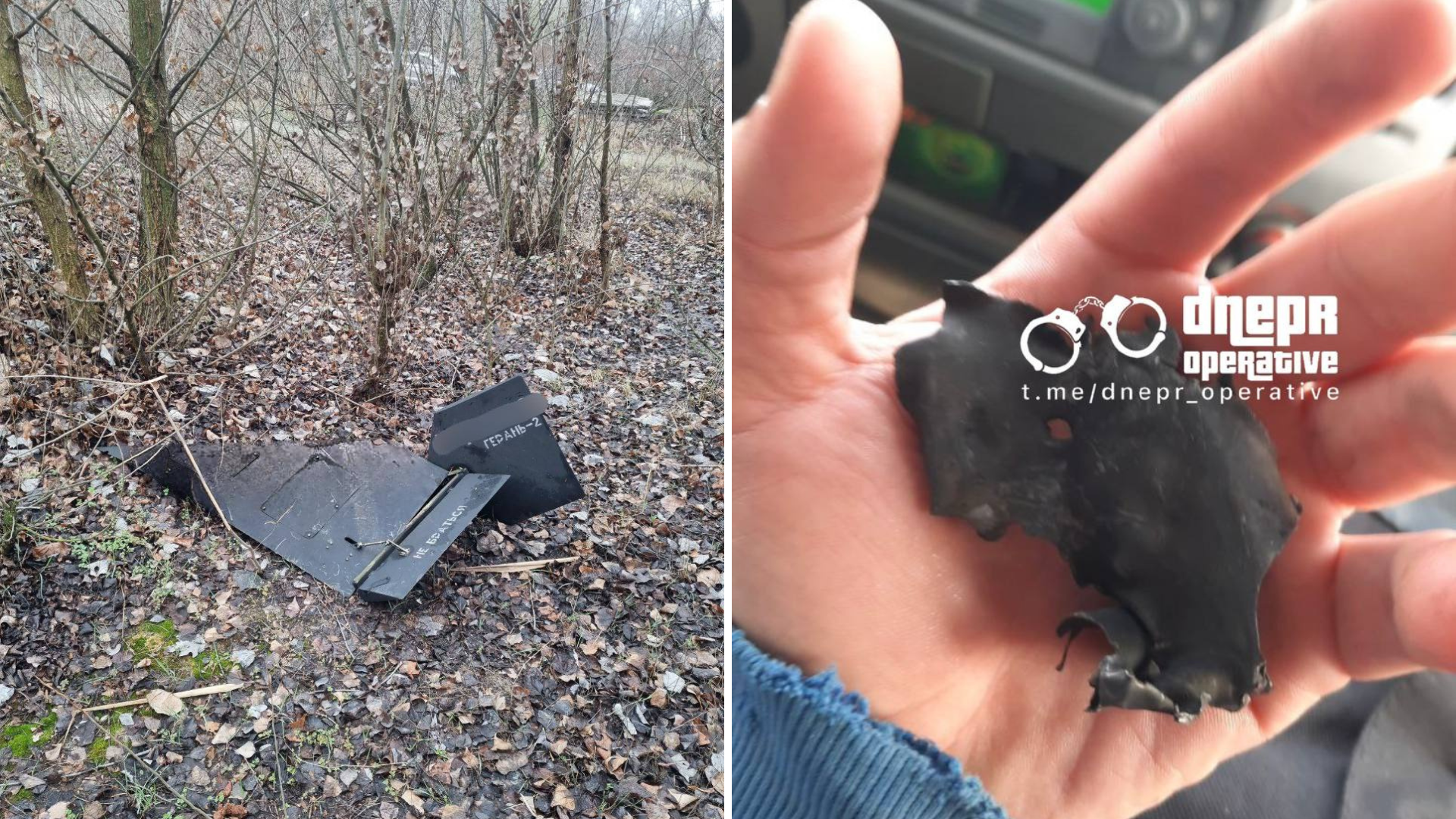 У місті триває ліквідація наслідків ворожих атак, мешканці Дніпра надсилають місцевим каналам світлини знайдених на вулиці уламків шахедів.