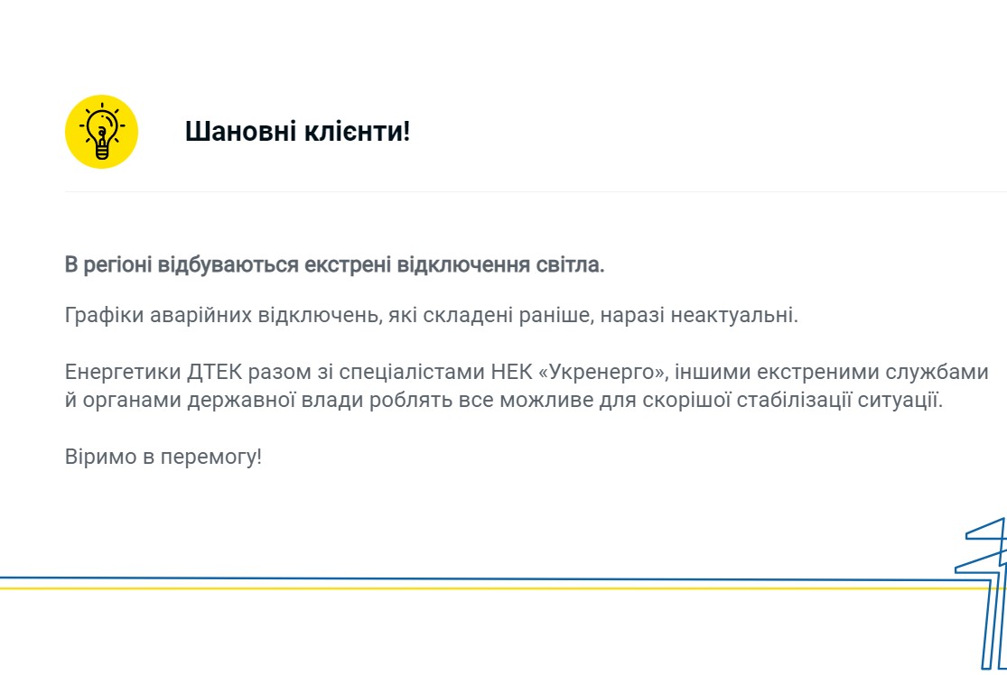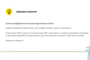 Енергетики вимушені застосувати більший обсяг обмежень. Це необхідний захід для збереження стабільності енергосистеми після вже шостої прицільної ракетної атаки рашистів по енерегооб’єктах. Ремонтні бригади працюють цілодобово над відновленням понівеченої інфраструктури, щоб повернути світло українцям.”