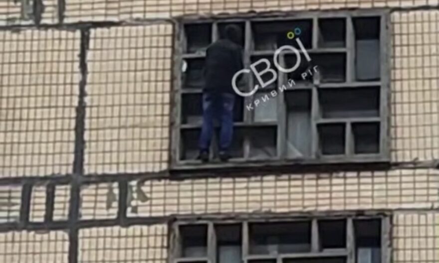 Почалася історія близько обіду – на місцевому телеграм-каналі «Свої. Кривий Ріг» зʼявився допис із відео, де чоловік буквально висить на 9 поверсі багатоповерхівки. На місце прибули поліція, рятувальники, медики.