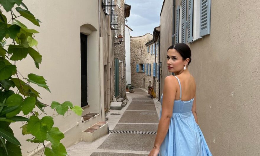 Цього разу 29-річна Катерина подалася на південь Франції, де нарбила фото в сукні з корсетним декольте і з торбинкою (за $3000).