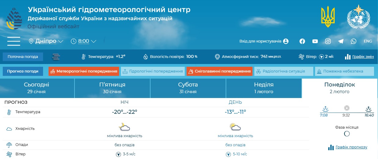 З 1 по 3 лютого очікується зниження температури до 20-25° морозу вночі. Дещо менше вдень: до 10-15° морозу.