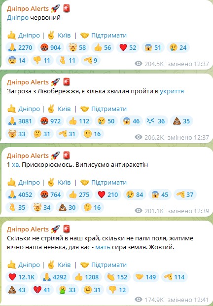 Незабаром писали, що чутно вибухи у передмісті Дніпра. Наразі повідомлень про пошкодження не надходило. Писали, що збито зброю було над Синельниківським районом.