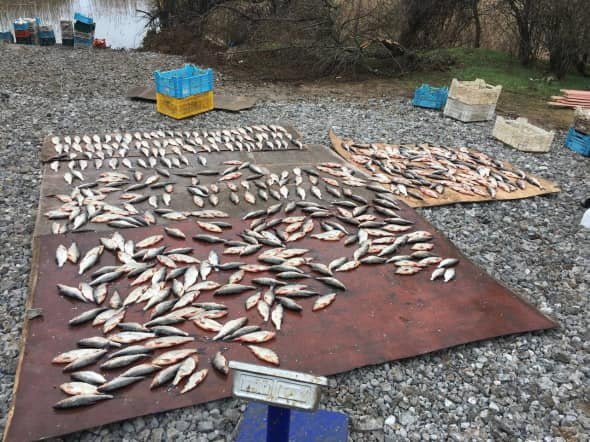 Просто на березі Карачунівського водосховища рибоохоронний патруль виявив 1,7 тонни риби. Там знаходилось 4 дерев’яних човни, сітка, довжиною 170 метрів та 1692,3 кг риби. У сітках і ящиках були плітка, карась сріблястий, окунь, щука, сазан,. Цим уловом браконьєри завдали Криворіжжю майже 13 мільйонів гривень збитків, – повідомляє “Дніпро Обласний” з посиланням на Дніпропетровський рибоохоронний патруль.