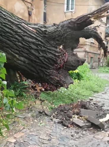 А у більшості телеграмканалів Дніпропетровщини пишуть, що у Кам’янському гниле дерево впало на дом, гілка розламала покрівлю балкону. Ще одне дерево понівечило автівку.