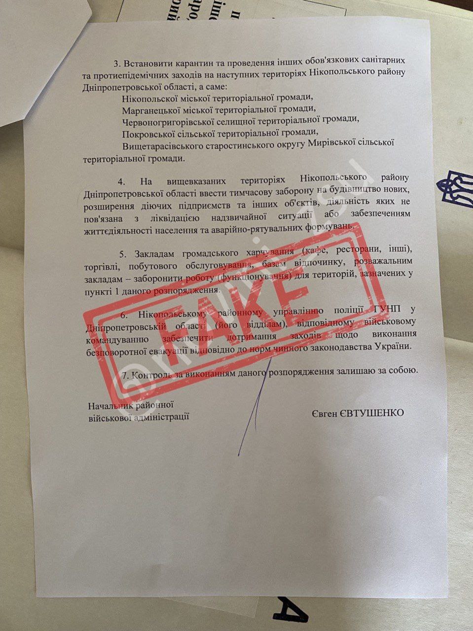 Сам же голова району обурений: повідомляє на офіціному ресурсі, що подібних розпоряджень він не підписував і наголошує: це черговий фейк, щоб посіяти паніку.