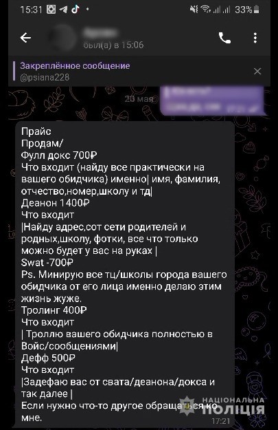 Кіберполіція Миколаївської області викрила неповнолітнього злочинця з Дніпропетровщини, який заробляв на тому, що розсилав неправдиві повідомлення про замінування будівель. Крім цього, хлопець також пропонував в месенджерах знайти інформацію про особу та її рідних з відкритих джерел, а також здійснити кібербулінг жертви.