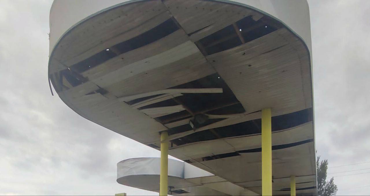Пошкоджені АЗС, підприємство, адмінудівлі та авто.