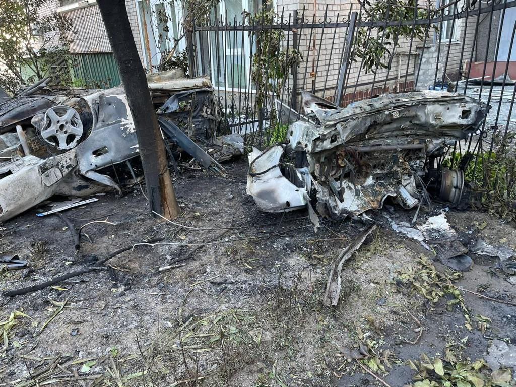 Через влучання загорілися два автомобілі біля багатоповерхівок. Пожежу загасили вогнеборці. На жаль, машини повністю знищено.