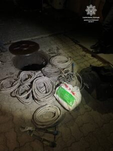 У чоловіка були із собою мішки та ножиці по металу. За їхньою допомогою він вже встиг вирізати кілька метрів кабелю.