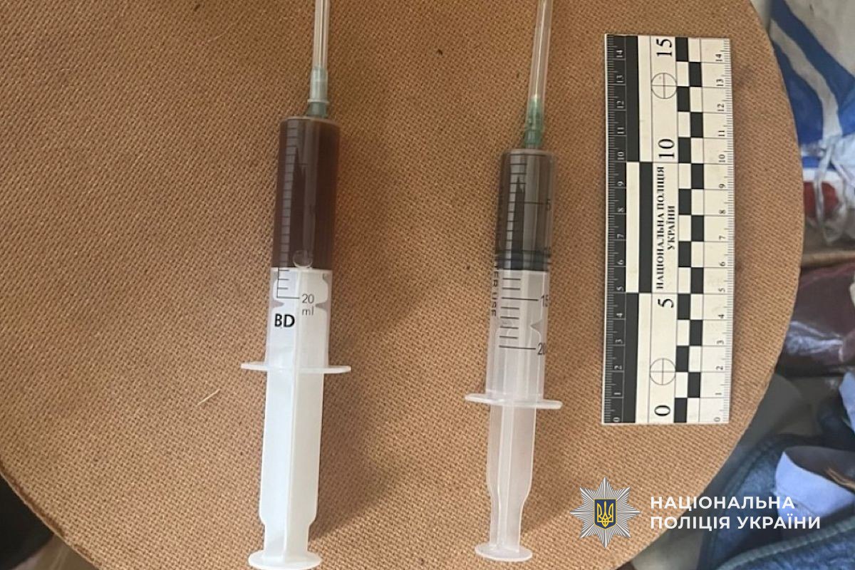 Знайшли медичні шприци з опієм, 360 сліп-пакетиків з канабісом, 17 пляшок з речовиною невстановленого походження різного об’єму, грошові кошти, банківські картки, мобільні телефони та чорнові записи.