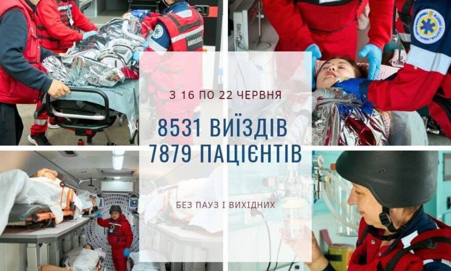 У період з 16 по 22 червня бригади екстреної медичної допомоги Дніпропетровської області виїздили 8531 разів та надали допомогу 7879 пацієнтам.