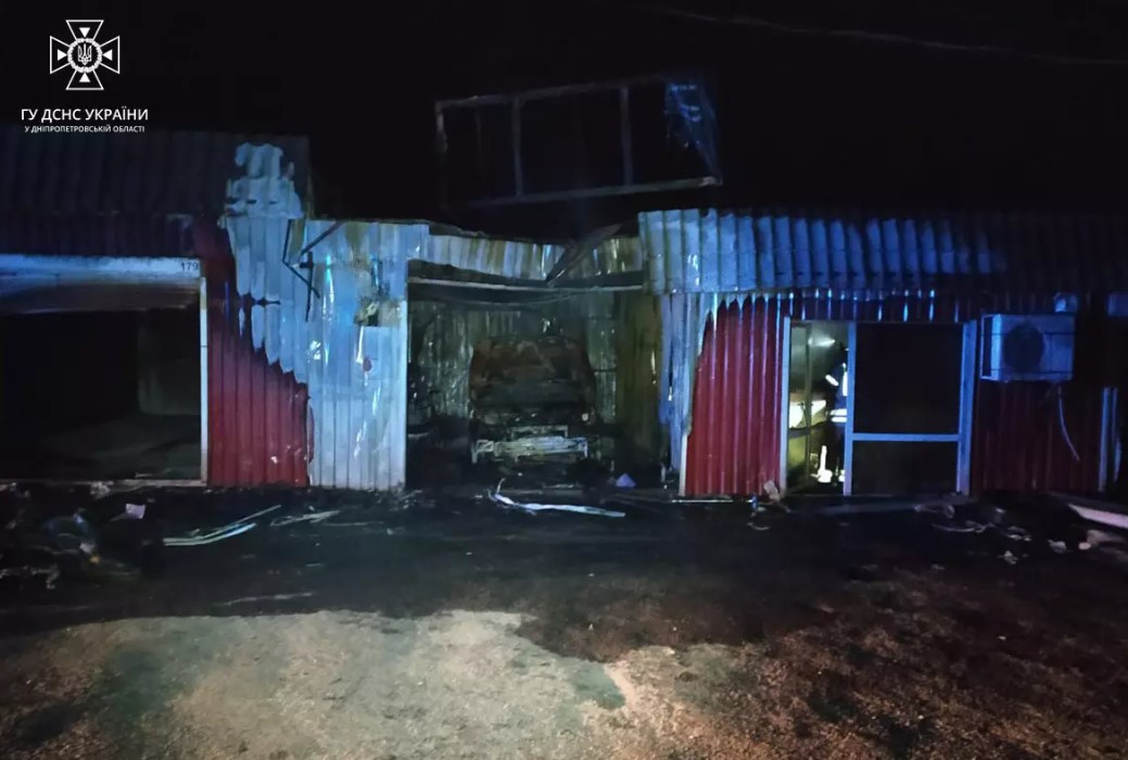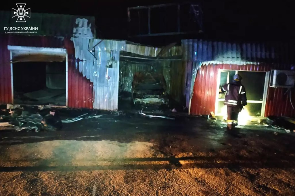 Вогнем знищено легковий автомобіль «ВАЗ-2110», який знаходився в торгівельному павільйоні, автозапчастини, а також вхідні двері та ролети двох сусідніх павільйонів.