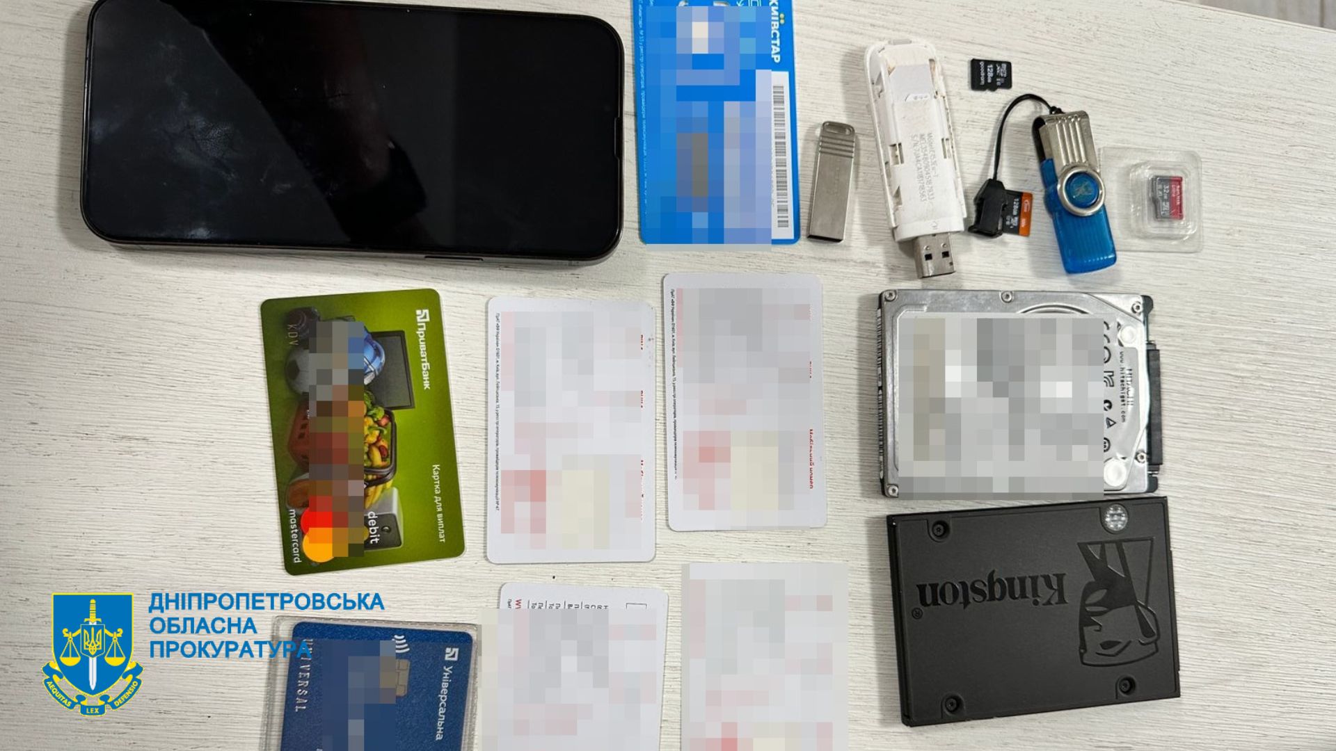 Правоохоронці провели понад 10 обшуків вдома в учасників групи. Було вилучено банківські карти, телефони, сім-картки, гроші, чорнові записи.