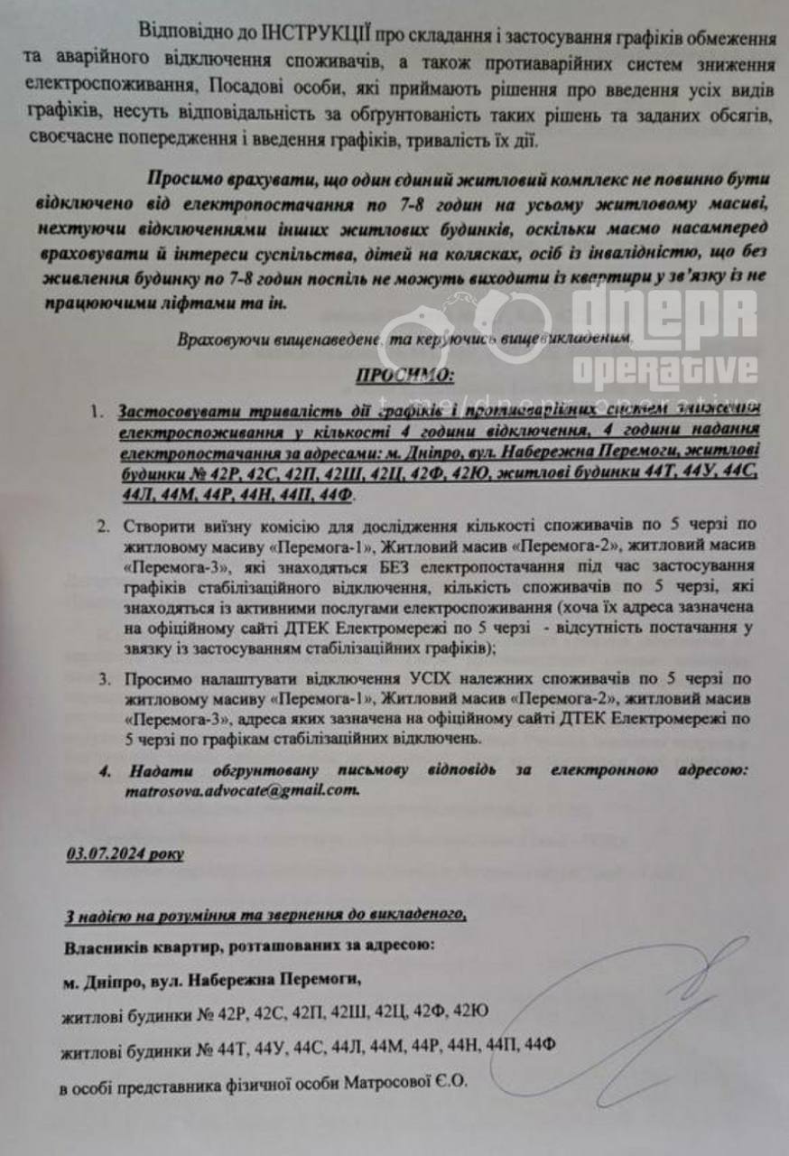 До скарги мешканців ДТЕК дослухались і того ж дня вимкнули світло на 16, 5 годин – з 17 вечора до 9:30 ранку наступного дня. Цього разу – вже в обох ЖК, і у тих, хто писав скарги. і у тих, кого не вимикали.