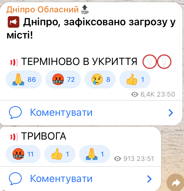 Біля 23:50 телеграмканали Дніпра повідомили про вибух – і одразу почалася тривога.