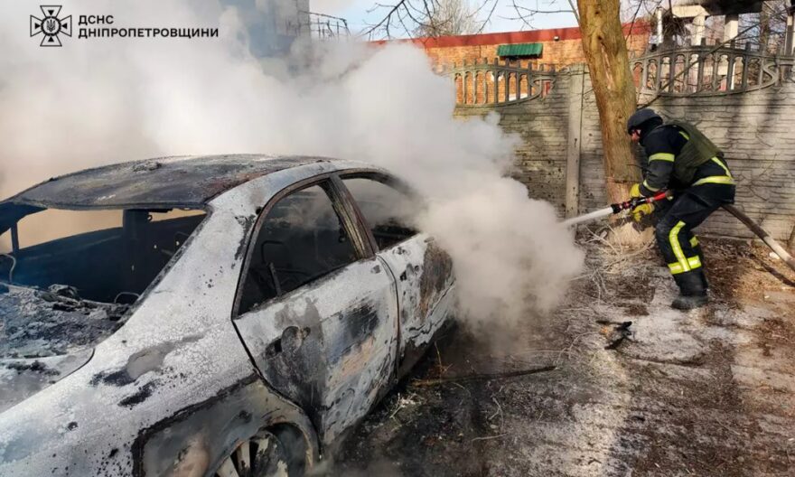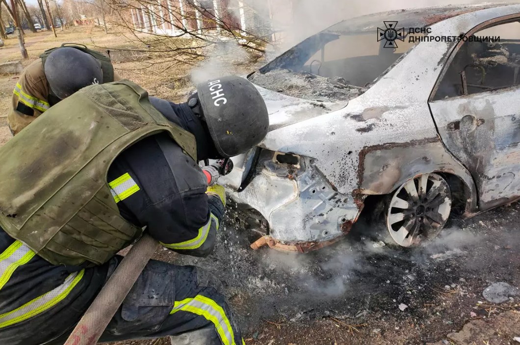 Внаслідок обстрілу у Нікополі згоріли вщент два легковики. Вогонь знищив «Mazda 6» та «Daewoo Lanos». На місце пожежі прибули рятувальники і ліквідували пожежу на площі 6 кв.м.
