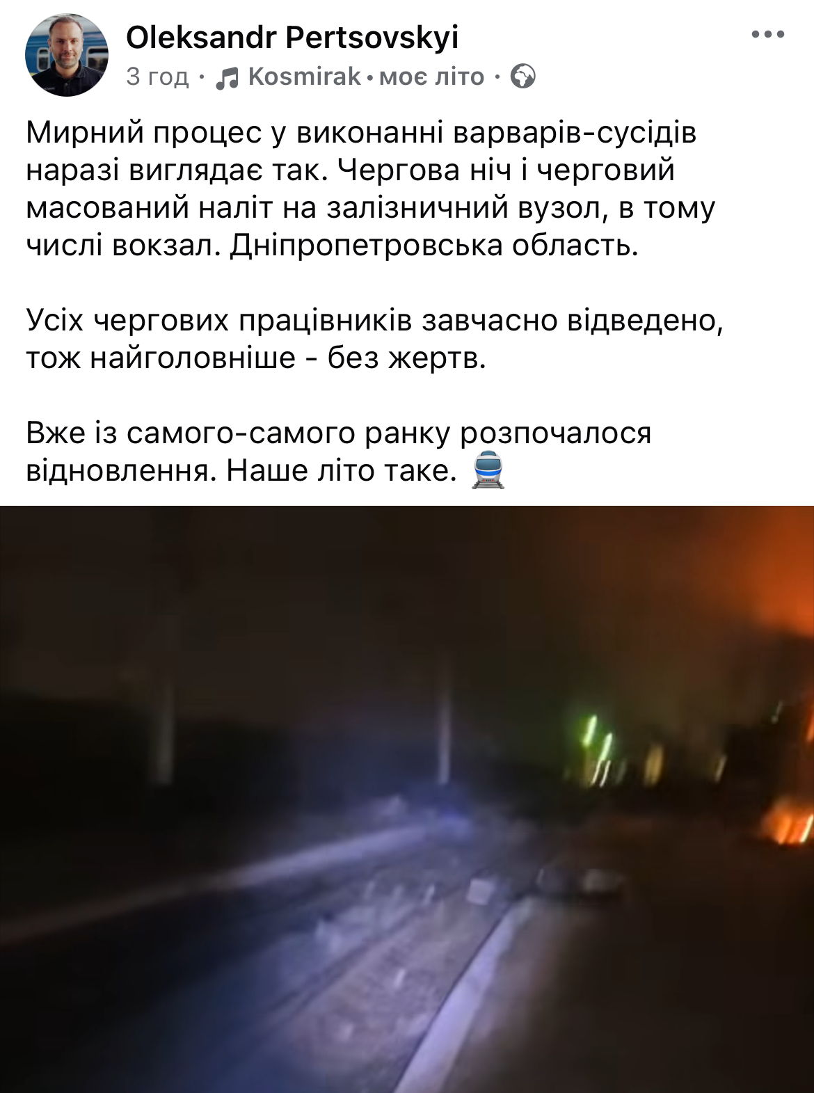 Підтвердив інформацію і генеральний директор Укрзалізниці Олександр Перцовський, виклавши у дописі у соцмережах відео з місця прильоту.