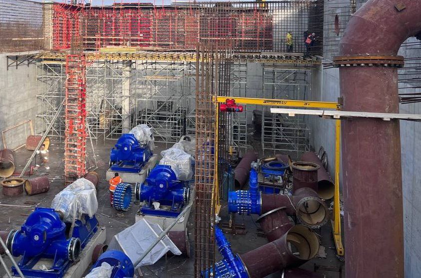 Наразі там тривають роботи з монтажу обладнання на насосній станції, встановлення обладнання запірної арматури, бетонування стін. Зазначають, що бригади працюють цілодобово без вихідних, щоб якомога швидше забезпечити безперебійне і стабільне водопостачання. Задіяно більш ніж 360 фахівців та до 100 одиниць техніки.