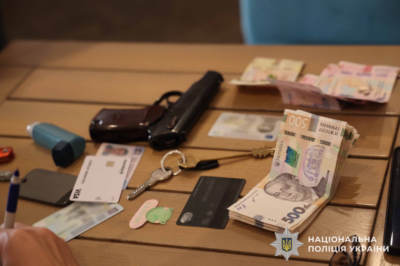 Під час обшуків за місцем мешкання чоловіка та в його автомобілі поліцейські вилучили мобільні телефони, ноутбук, документи з ознаками підробки, чорнові записи, грошові кошти, а також пістолет та набої до нього.