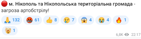 На жаль, після 22-ї години Нікопольщину знову повідомили про загрозу артобстрілу.